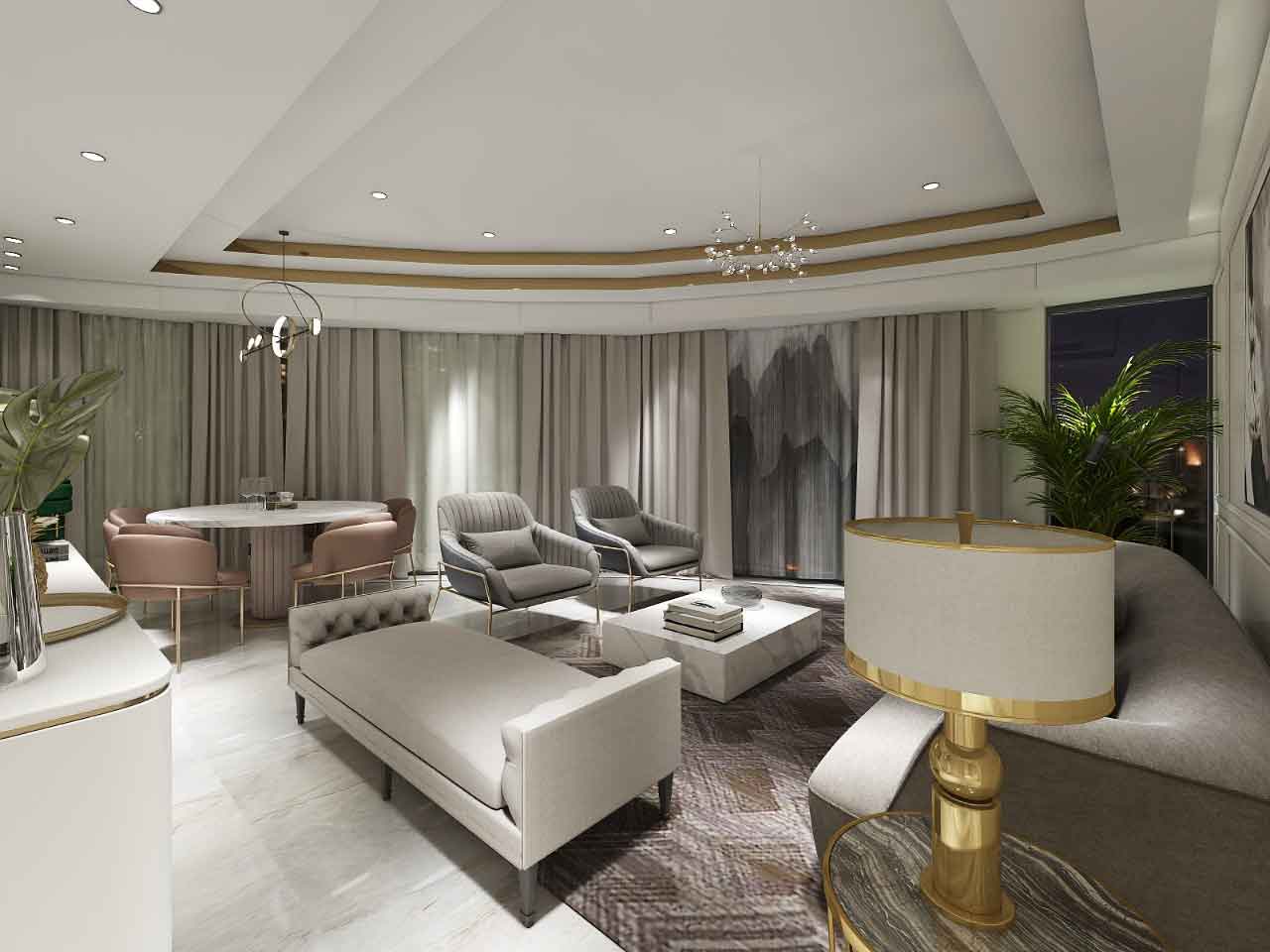 That was an added advantage for us. The design discussions would sometimes go on till 12 o’clock or even one o’clock in the night. We had a non-stop process with them and completed the whole design sign-off in 10 days. Some of the furniture which had to be manufactured in the factory was done in India, and the other part of it was done in China. We started the order on the 15th day after the clients came to us with a design intention. The challenge was then on site, since we had to start from the marble floor, to the ceiling, air conditioning, electricals, plumbing, etc. We were showing the designs to them on the 3D platform and we were getting them executed at the same time. We didn’t have the liberty of designing and then going to the site. We had to do both processes simultaneously. We made some changes to the design and showed it to them, and immediately got it executed. Whatever furniture was to be manufactured in the factory had to start first, so we got those selections from the clients. Even before the false ceiling or the flooring was done, we went with a fixed size of furniture. We knew that this was the size for which we had ordered. Now the walls had to be done with this measurement itself, so we couldn’t go wrong with that. Even the angles, the plumb, and everything else had to be kept in such a way that it matched the given sizes.